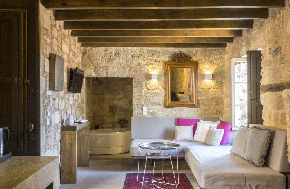 The restoration of the building, which gives it its present form, has been carefully done respecting the character, the history of the building and the comfortable living of our visitors. The basic intention of the restoration was the contemporary design of the intervention (present) to harmonize with the existing historical shell (past).